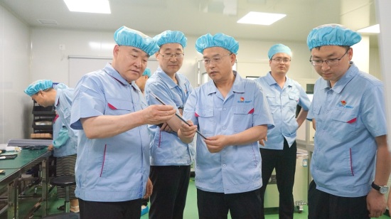 7月4日,天光半导体党委书记、董事长卢宇一行6人来公司参观交流。公司党委书记、董事长崔国强,党委副书记、总经理朱煜热情接待。