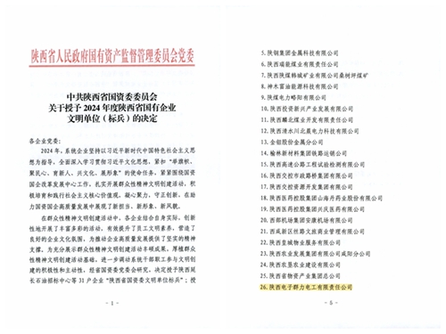 喜报 | 公司荣获2024年度“陕西省国资委文明单位”称号