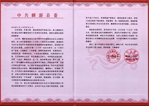 【公司新闻】公司收到麟游县委、县政府感谢信和锦旗